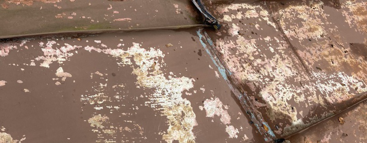 Hier werden die rostigen Stellen sowie die abgeblätterte Farbe des Voranstriches sauber geschliffen und entfernt.